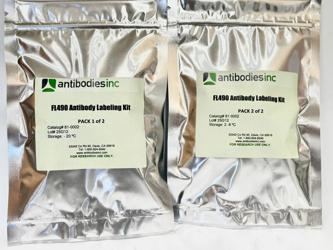 3) After the 10-minute incubation is complete, add 90 µL final buffer diluent to FL490-labeled antibody, vortex, and it is now ready to use in your assay. Final antibody concentration is ~0.25-0.5 mg/mL, depending on starting concentration.
