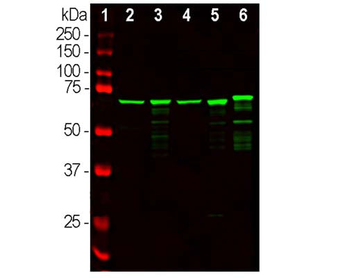 Spin vial briefly before opening. Reconstitute with 50 µL sterile-filtered, ultrapure water. Centrifuge to remove any insoluble material. Store lyophilized antibody at 2-8°C After reconstitution of lyophilized antibody, aliquot and store at -20°C for a higher stability. Avoid freeze-thaw cycles. Store at 4°C for up to one month for short term storage and frequent use.