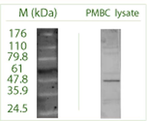 Detects human protein via non-reduced WB, and ELISA human, rat. Other species not yet tested.