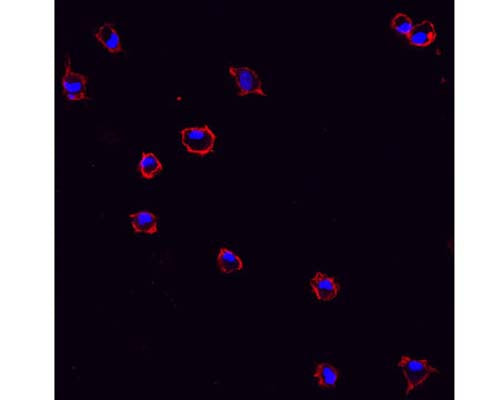 ![Immunohistochemical staining with mouse monoclonal antibody to CD11b [OX42] M-1325-100 of pure (>98%) microglial cells isolated from mixed glia cultures obtained from neonate rat brains (1.25 µg/mL). Secondary antibody was biotinylated anti-mouse (1.25 µg/mL) and detection method used Extravidin-Cy3 conjugate (2.5 µg/mL). Cells were fixed before incubation with OX42 (1hr). Cells were not permeabilized. Pictures courtesy of Markus Smolny.](http://www.antibodiesinc.com/cdn/shop/files/m-1325-100-ihc-1_120x120.jpg?v=1759274331)