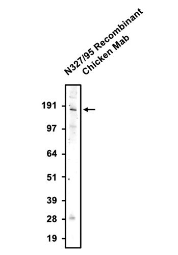 This recombinant antibody is a chimeric antibody created by replacing the mouse heavy and light constant regions of clone N327/95 with chicken IgY heavy and light constant regions. As such this antibody retains the same binding performance as the original clone N327/95 but can be detected using standard anti-chicken secondary antibodies allowing flexibility for multiplexing applications. This antibody is expressed recombinantly in mammalian cells and then affinity purified from the cell culture media.