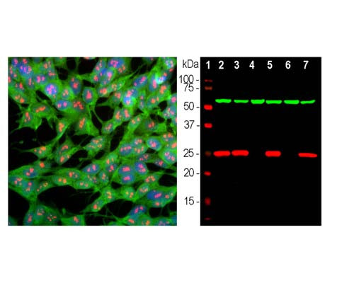 Our Anti-Ubiquitin C Terminal Hydrolase 1 (UCHL1) rabbit polyclonal primary antibody detects bovine, chicken, horse, human, mouse, pig, and rat Ubiquitin C Terminal Hydrolase 1 (UCHL1), and is whole serum. It is validated for use in ICC, WB.