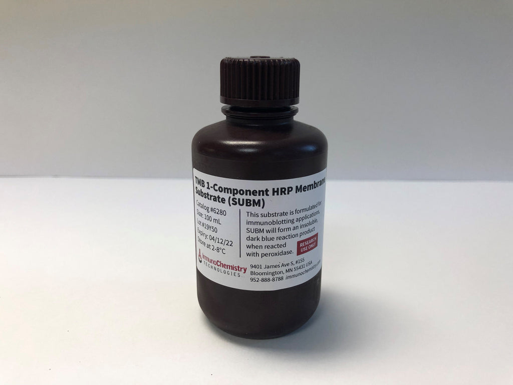 - Completely cover the membrane surface with the substrate. The substrate will react with peroxidase creating an insoluble permanent dark blue reaction product.